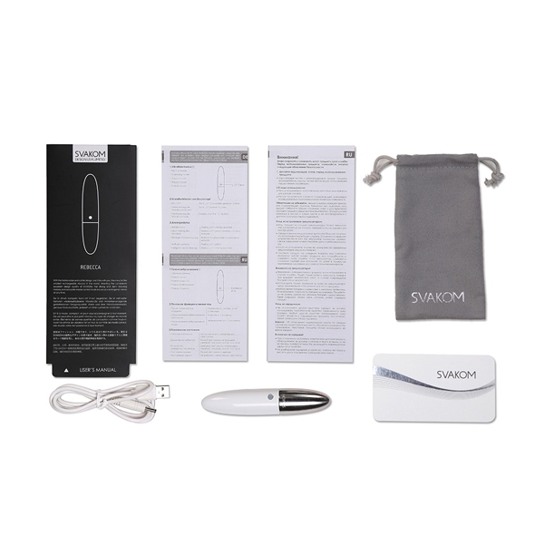 Rebecca is the smallest rechargeable massager in the world that's ready for pleasure any time you are. Discreet for travel and able to fit in any purse or pocket, Rebecca's unique style can easily pass as your favorite lipstick. Like your favourite lipstick Rebecca goes wherever you go and provides silent pleasure for your every desire. Rebecca uses 100% certified green technology. It is simple to use and the rechargeable battery offers 5 passion modes and variable speeds to make every secret encounter your best. With a high quality stainless steel cap concealing the charging port, Rebecca is elegance defined offering intelligent technology in a stylish, compact and discreet design made to go anywhere. Product Features: - The world's smallest rechargeable massager - Easy to carry lipstick shape - One key intelligent - Silver charging port cover - Green material - Noiseless - Rechargeable Material: Environmental friendly ABS, excluding Phthalates Size: 19x95mm Weight: 27 g Battery Capacity: 100mAh Battery Type: Polymer lithium battery Charging Time: 1 hours Using Time: 2 hours Water Repellency: Splashproof Vibrate Mode: 5